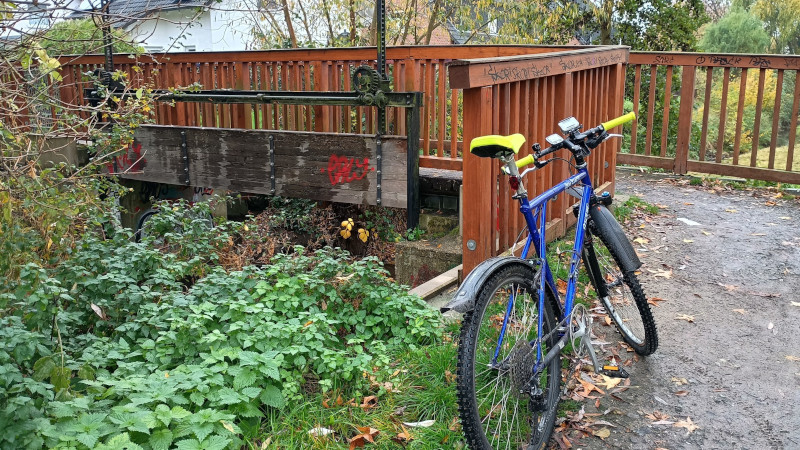 Auf der Rückseite ging es ein Stück am Flughafen entlang, bevor es wieder bergauf nach Sölde ging. Nach 37 km kam ich am Ziel an. Der Schnitt betrug noch 16 km/h. Zurück ging es wieder über den Emscherradweg. Nach insgesamt knapp 57 km kam ich wieder zu Hause an. Es war eine schöne Gravelstrecke, nicht zu anspruchsvoll. Das GT und ich waren aber wegen des Wetters total eingesaut. Die Tour war auf jeden Fall eine gute Vorbereitung auf die Westfalen Winter Bike Trophy ab Januar. Mit dem GT war ich total zufrieden, mit meiner Form noch nicht ganz. Aber ich war deutlich fitter als in den Jahren 2021 bis 2025. Und das lässt hoffen. Etwas Zeit ist ja auch noch bis zum ersten Lauf am 04. Januar 2026.